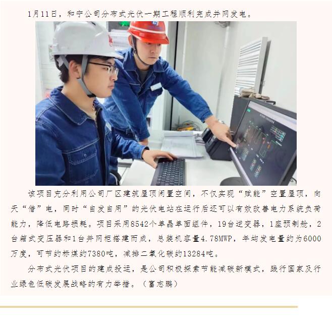 和寧公司分布式光伏發(fā)電成功并網