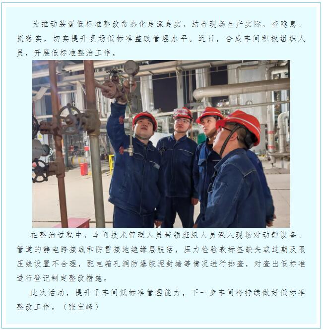 合成車間開展現(xiàn)場低標(biāo)準(zhǔn)整治工作