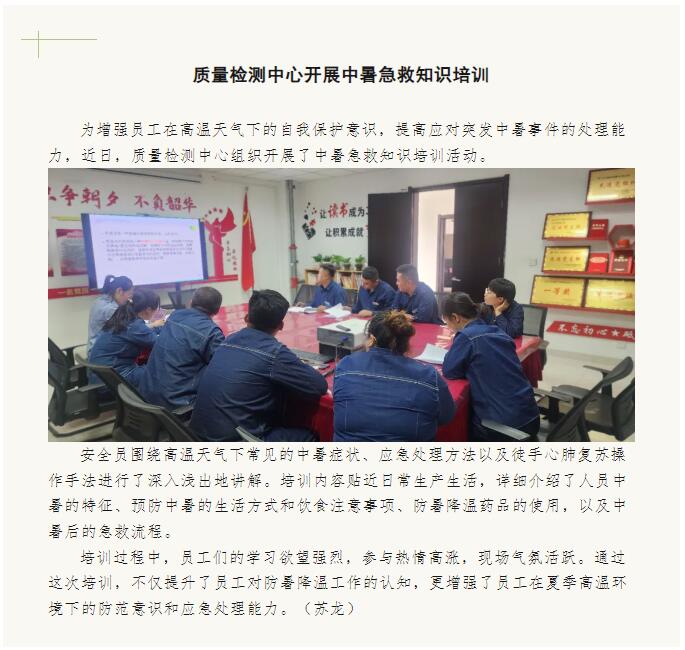 質(zhì)量檢測中心開展中暑急救知識培訓(xùn)