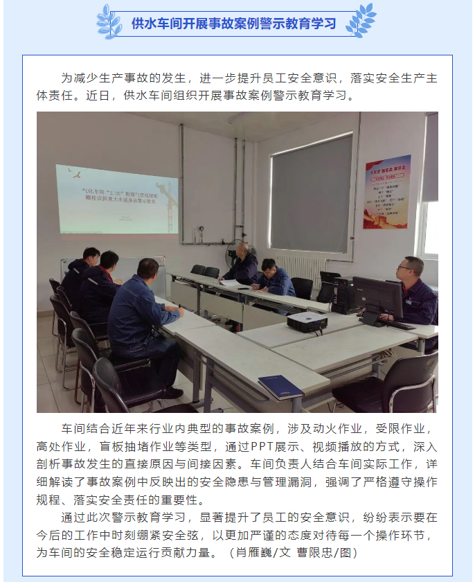 供水車(chē)間開(kāi)展事故案例警示教育學(xué)習(xí)