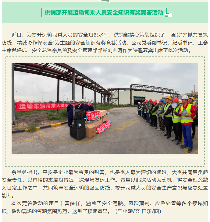 供銷部開展運(yùn)輸司乘人員安全知識有獎競答活動