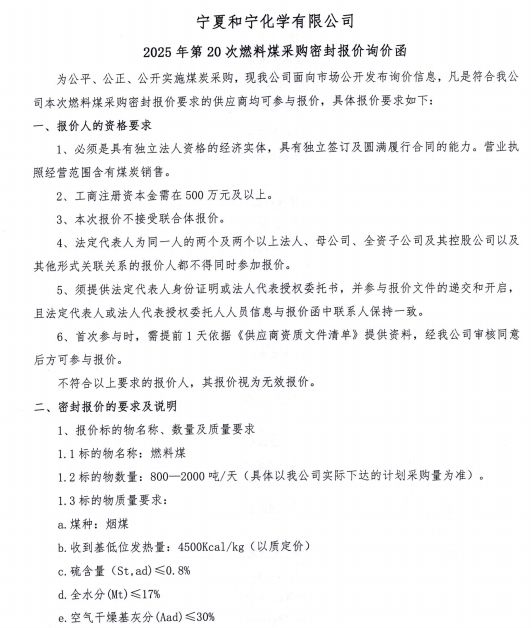 寧夏和寧化學(xué)有限公司2025年第20次燃料煤采購(gòu)密封報(bào)價(jià)詢價(jià)函.pdf