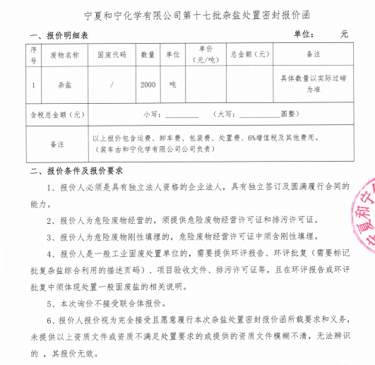 寧夏和寧化學(xué)有限公司第十七批雜鹽處置密封報(bào)價(jià)函.pdf