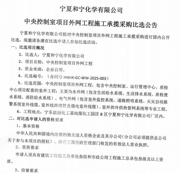 寧夏和寧化學(xué)有限公司中央控制室項(xiàng)目外網(wǎng)工程施工承攬采購比選公告.pdf [全文]
