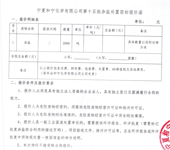 寧夏和寧化學(xué)有限公司第十五批雜鹽處置密封報價函.pdf [全文]