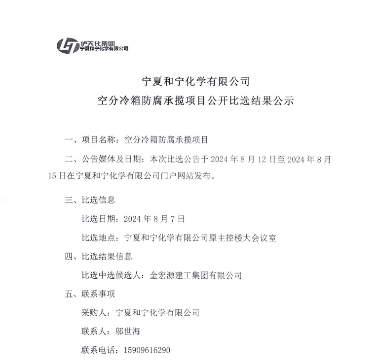 寧夏和寧化學有限公司空分冷箱防腐承攬項目公開比選結(jié)果公示.pdf [全文]