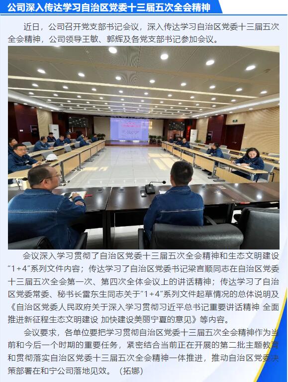 公司深入傳達學習自治區(qū)黨委十三屆五次全會精神