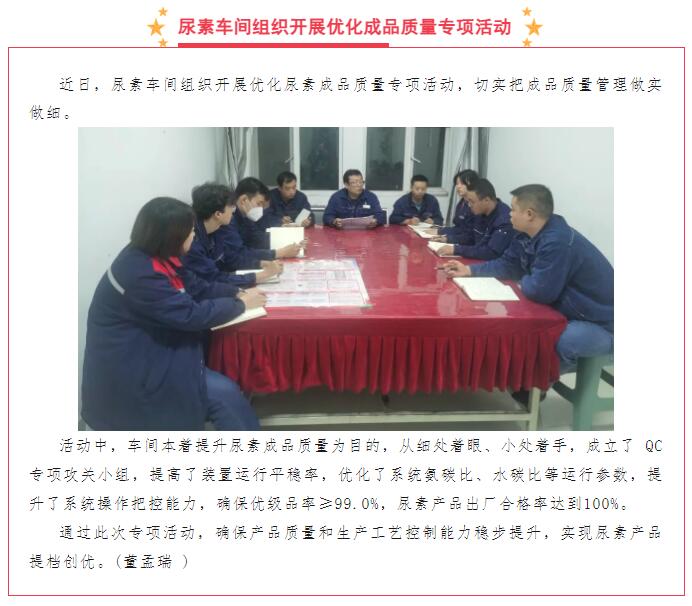 尿素車間組織開展優(yōu)化成品質(zhì)量專項活動