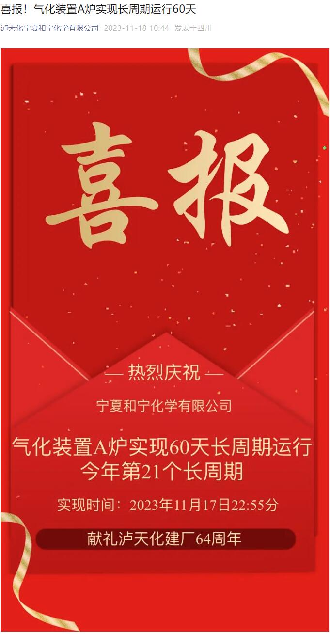 喜報(bào)!氣化裝置A爐實(shí)現(xiàn)長(zhǎng)周期運(yùn)行60天