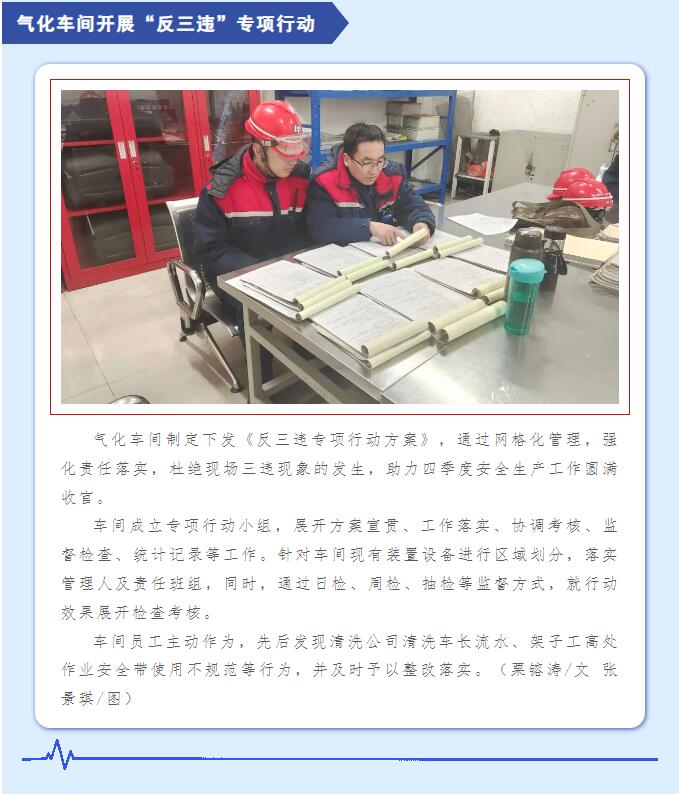 氣化車間開展“反三違”專項(xiàng)行動(dòng)