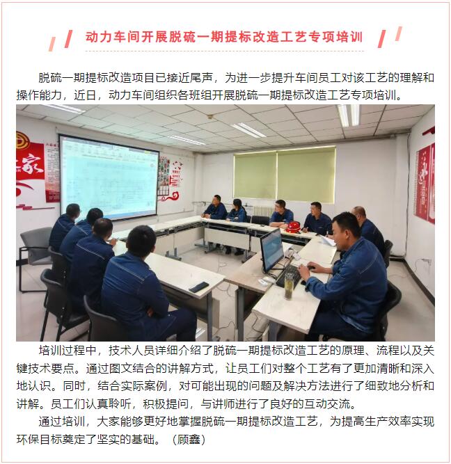 動(dòng)力車間開展脫硫一期提標(biāo)改造工藝專項(xiàng)培訓(xùn)