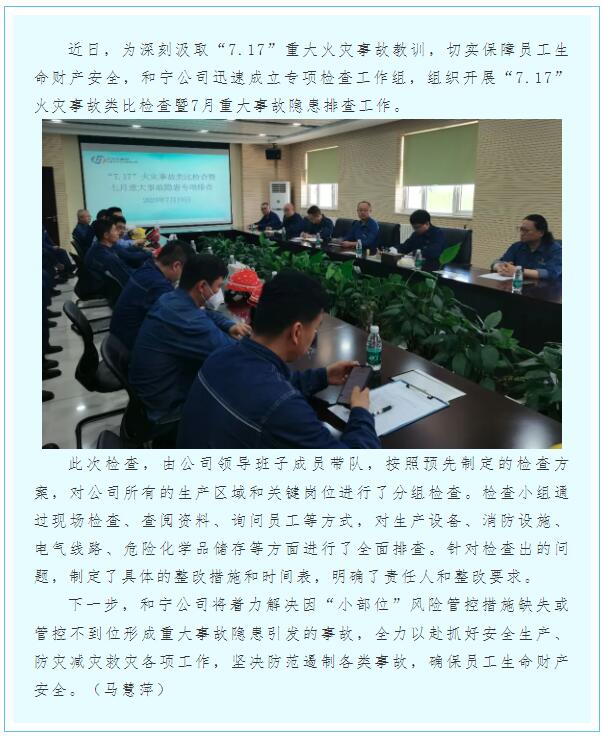 和寧公司開(kāi)展“7.17”火災(zāi)事故類比檢查暨7月重大事故隱患排查