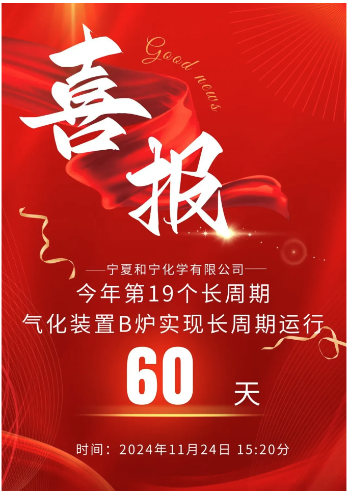 喜報(bào)!氣化裝置B爐實(shí)現(xiàn)長(zhǎng)周期運(yùn)行60天