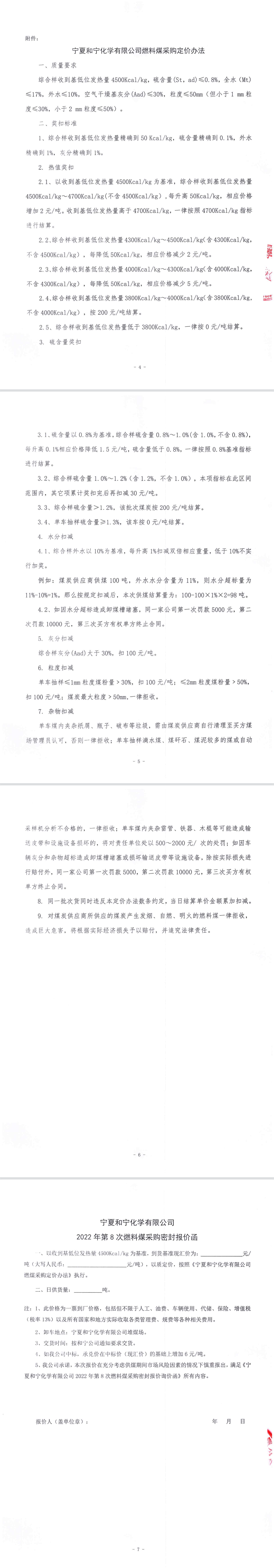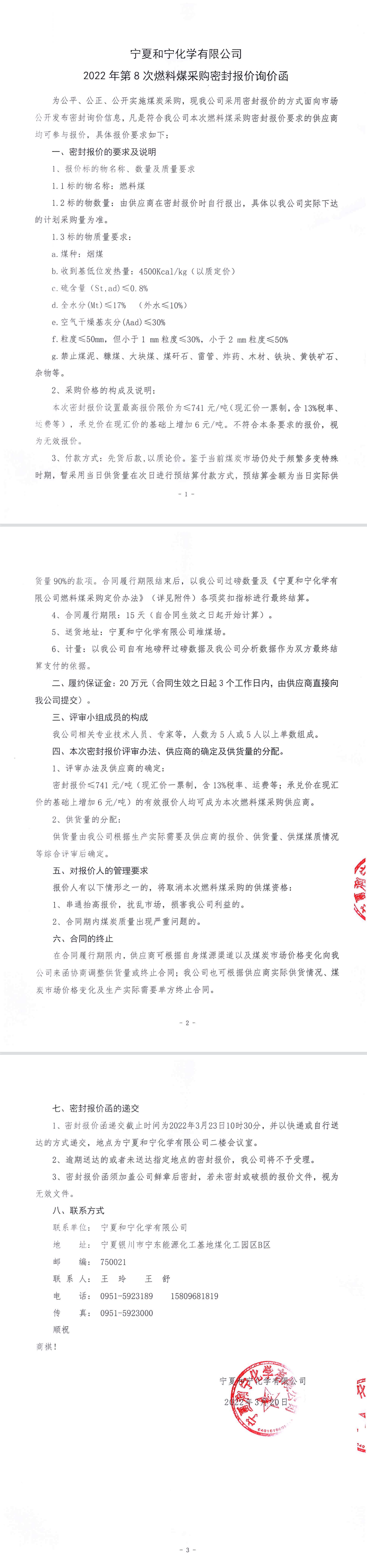 寧夏和寧化學(xué)有限公司2022年第8次燃料煤采購密封報價詢價函(1)