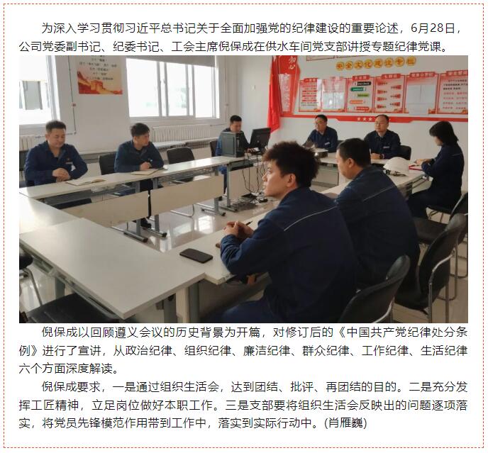供水車間黨支部對口領(lǐng)導講紀律黨課