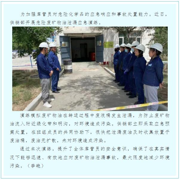 供銷(xiāo)部開(kāi)展危險(xiǎn)廢礦物油泄漏應(yīng)急演練