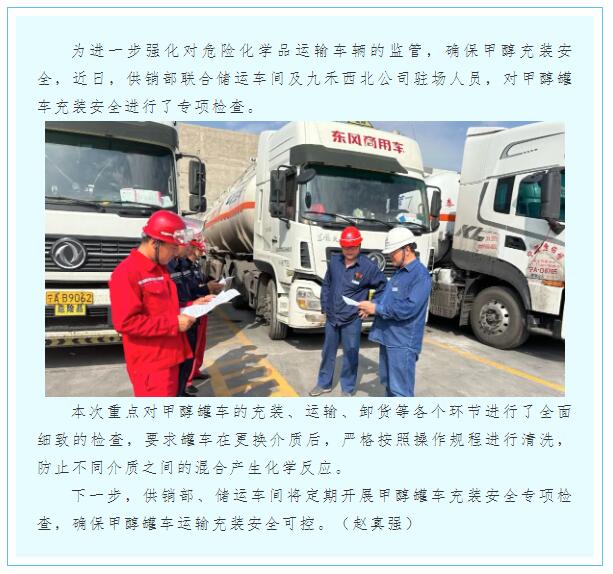 供銷部開展甲醇罐車充裝安全專項(xiàng)檢查
