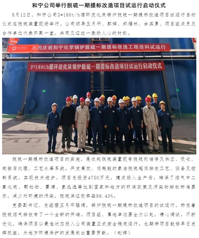 和寧公司舉行脫硫一期提標(biāo)改造項(xiàng)目試運(yùn)行啟動(dòng)儀式