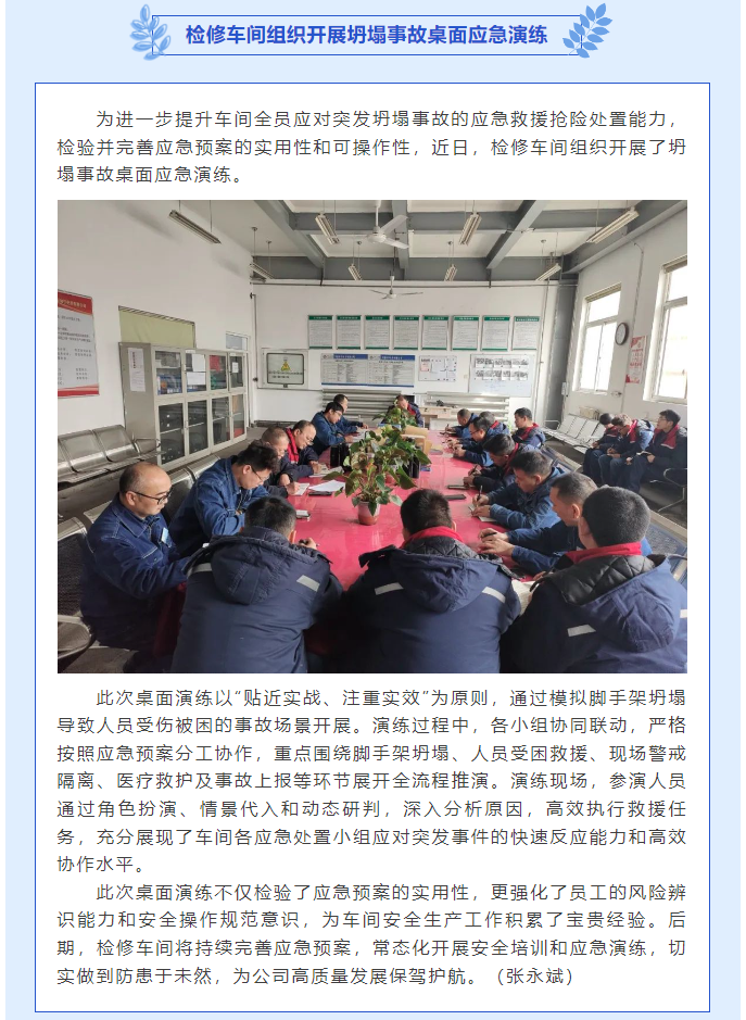 檢修車間組織開展坍塌事故桌面應(yīng)急演練