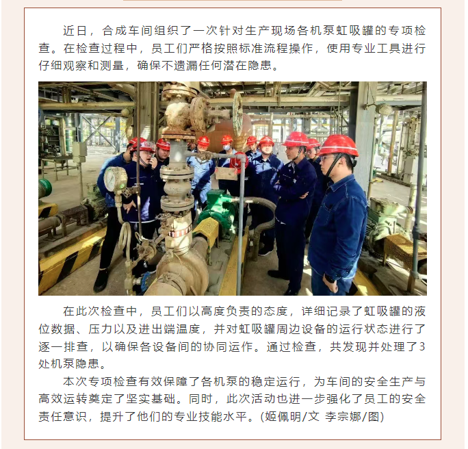 合成車間開展機(jī)泵虹吸罐專項(xiàng)檢查