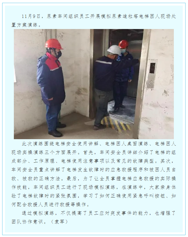 尿素車間開展電梯困人現(xiàn)場(chǎng)處置方案演練