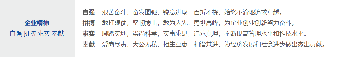 企業(yè)精神 自強(qiáng) 拼搏 求實(shí) 奉獻(xiàn)