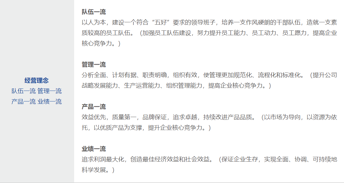 經(jīng)營理念 隊伍一流 管理一流 產(chǎn)品一流 業(yè)績一流