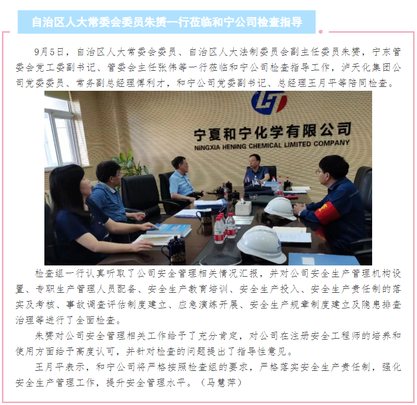 自治區(qū)人大常委會(huì)委員朱赟一行蒞臨和寧公司檢查指導(dǎo)