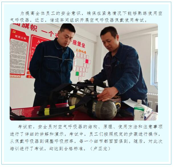 儲運車間組織開展空氣呼吸器佩戴使用考試