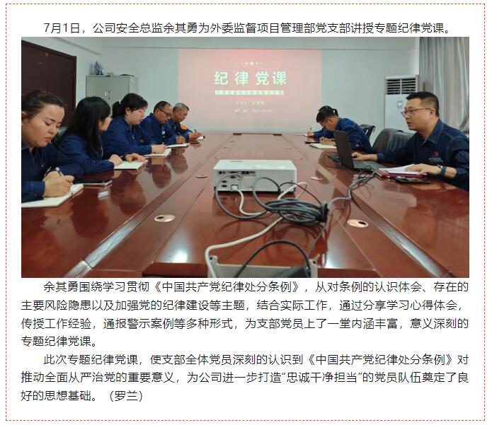 外委監(jiān)督項(xiàng)目管理部黨支部對(duì)口領(lǐng)導(dǎo)講紀(jì)律黨課
